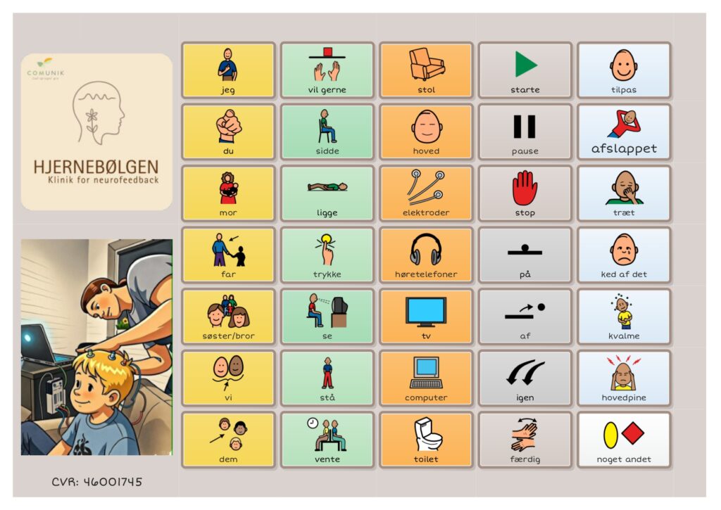 Denne kommunikationstavle er udviklet som et støttende redskab før, under og efter neurofeedbacktræning – særligt til børn, unge eller voksne, som kan have svært ved at sætte ord på behov, fornemmelser eller følelser i situationen.
