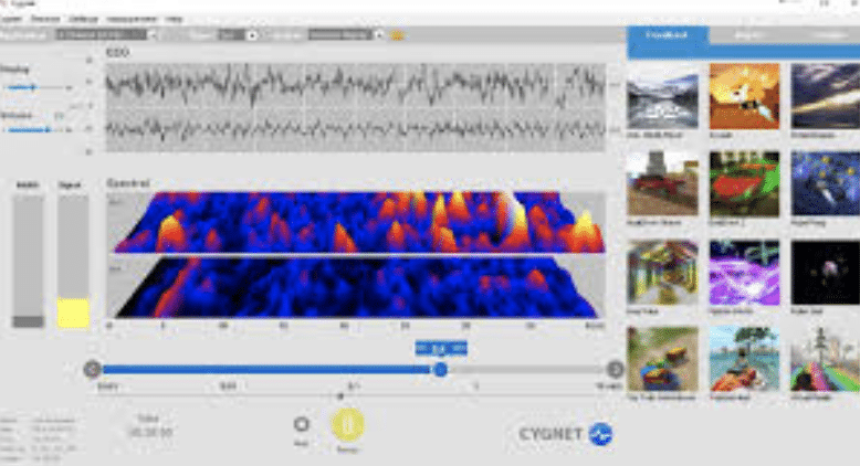 Cygnet er et softwareprogram, som i realtid analyserer EEG-signaler fra NeuroAmp og genererer auditiv og visuel feedback til klienten.